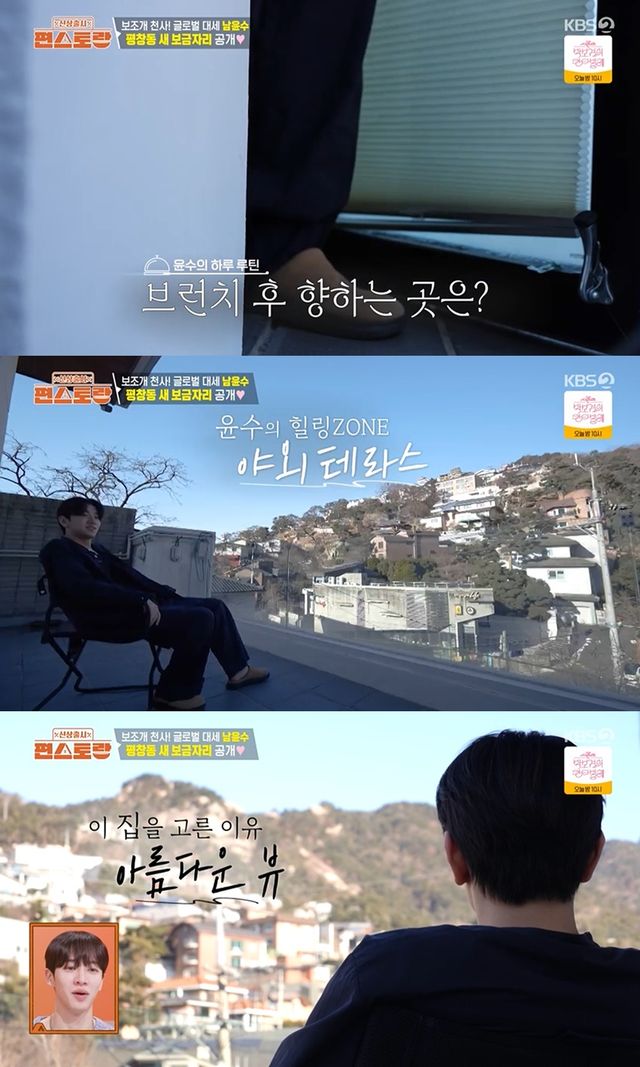 브런치를 즐긴 후 남윤수가 향한 곳은 야외 테라스였다. 탁 트인 뷰를 보던 붐은 다른 MC들과 같이 "성공했다"며 거듭 감탄했다.