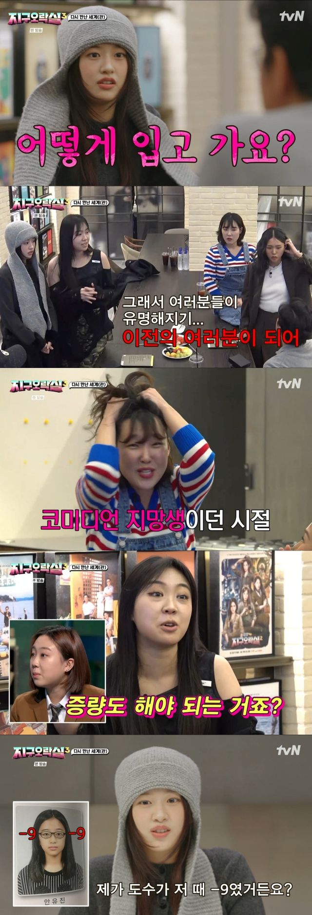 안유진은 "저 때 도수가 -9였다. 저 안경을 써야되는 거냐. 교정도 되돌려야 한다"면서 진지하게 덧붙여 확정 의상에 기대감을 더했다.
