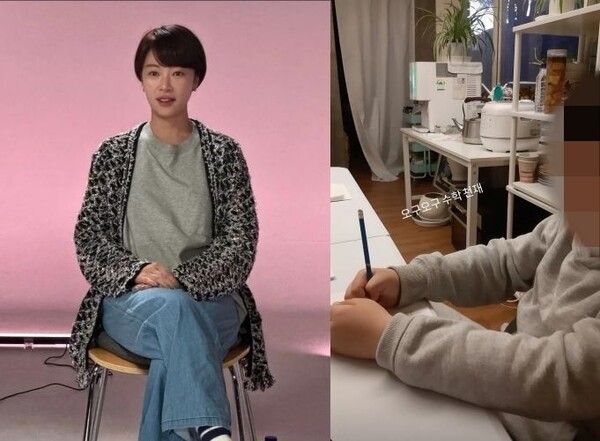 황정음의 아들은 지우개가 달린 연필을 잡고 공부에 집중한 모습이다.