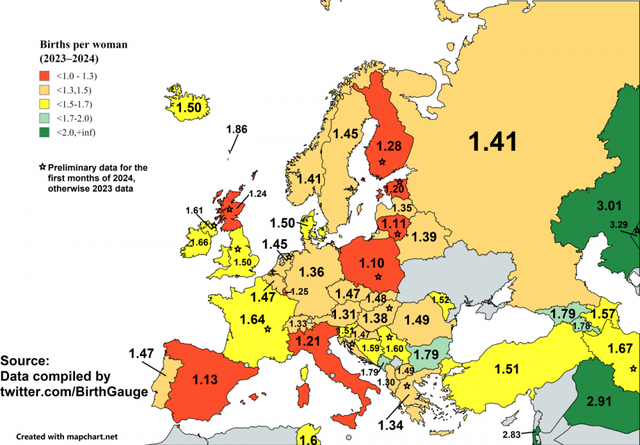 세계 최악의 출산율인 한국을 기준점으로 놓고보니 어느 국가의 출산율만 봐도 선녀 같아 보이는 착시 현상이 생기겠지만 스페인의 경우 유럽내 최저 수준의 출산율을 보유한 초저출산