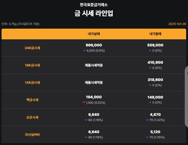 순금(24K) : 매입가 66만 원 / 매도가 56만 5000원