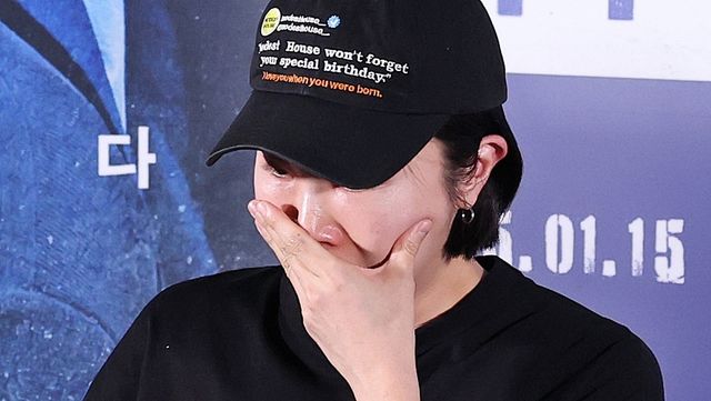 지난 1월 영화 ‘폭락’ 기자간담회에서 주연 배우 고(故) 송재림을 언급하며 눈물을 보인 현해리 감독 / 뉴스1