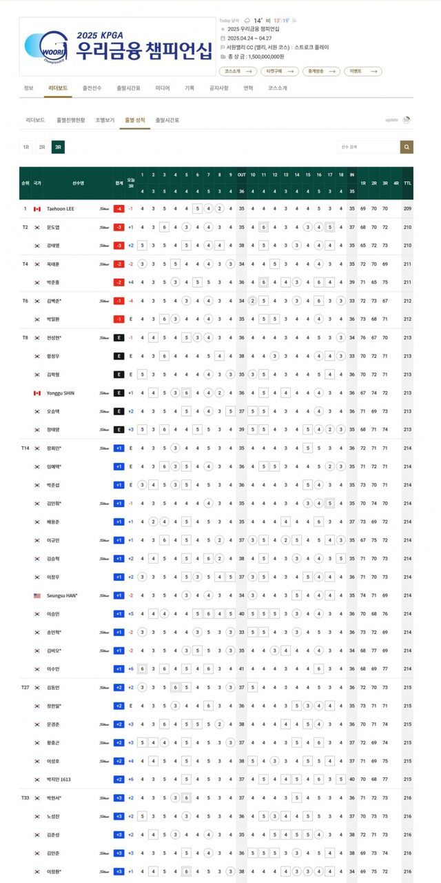 ▲우리금융 챔피언십 3라운드 순위