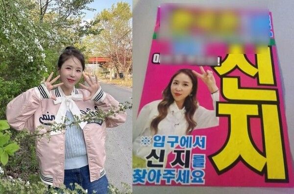전단지에는 '입구에서 신지를 찾아주세요'라는 글과 함께 신지의 사진이 담겼다.