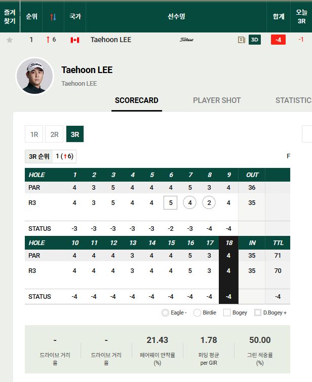 ●3라운드합계 4언더파 선두 이태훈 인터뷰