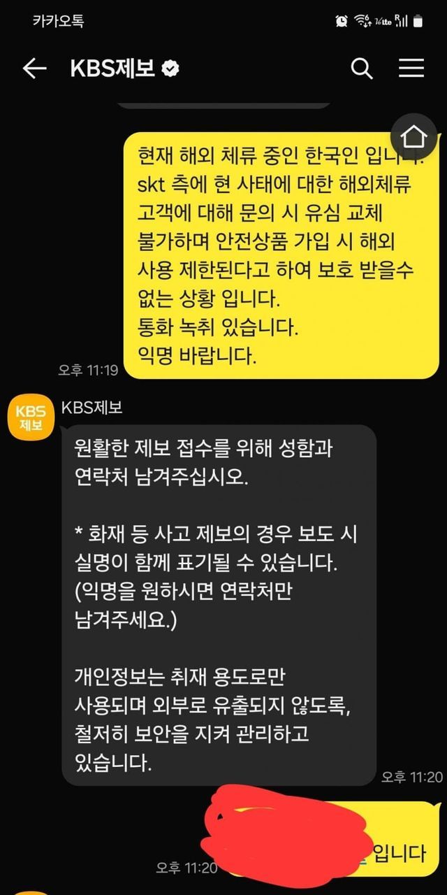 업무 차 해외체류 중인데 skt 사태 터지고 고객센터 전화한 결과는
