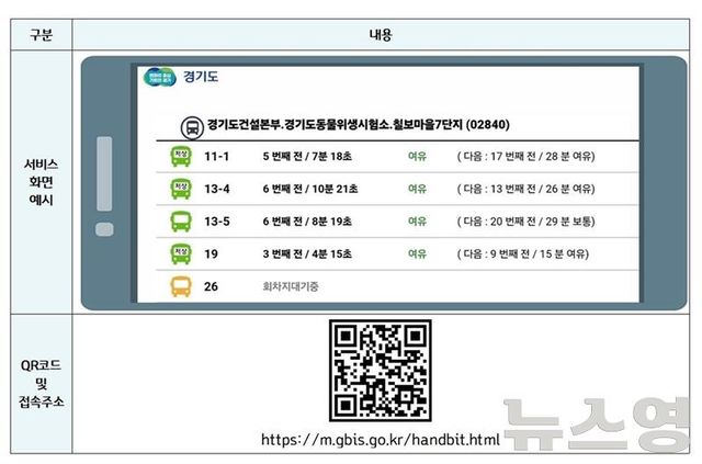 유병석 경기도 교통정보과장은 “이번 서비스로 정류소에 전광판이 설치돼 있지 않은 곳에서도 버스 도착정보 등을 쉽게 확인할 수 있게 됐다”며 “스마트폰 사용이 익숙하지 않은 고령자 등 디지털약자도 한 번의 터치로 편리하게 이용할 수 있도록 설계했다”고 말했다.