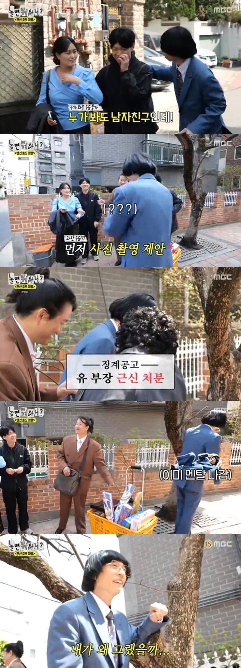 커플이 연신 "괜찮다"라고 말하자, 유재석은 "너무 죄송합니다. 딱 봐도. 누가 봐도 남자 친군데"라며 재차 사과했다.