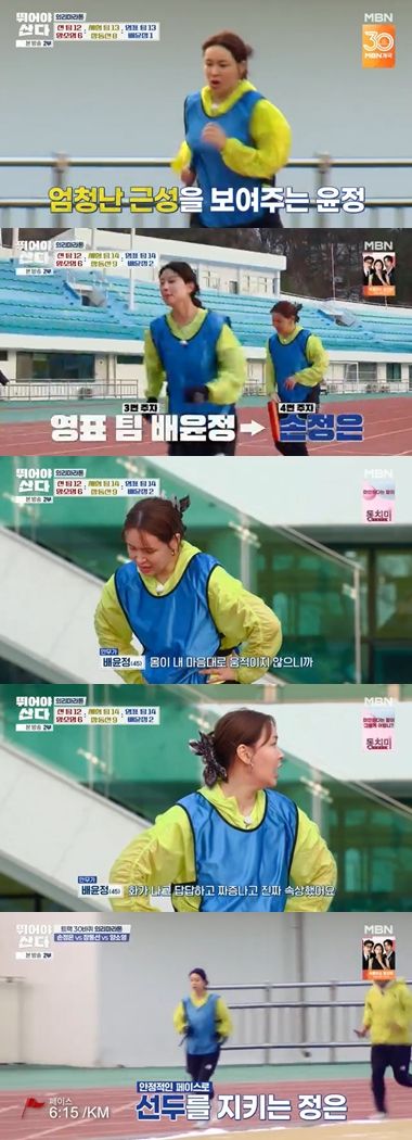 이어 배윤정은 "한 바퀴만 멀쩡히 뛰자 생각했는데. 제가 안 뛰면 뒷사람이 책임을 져야 한다는 부담감이 있어요"라며 팀원들을 배려하는 모습까지 보여줬다.