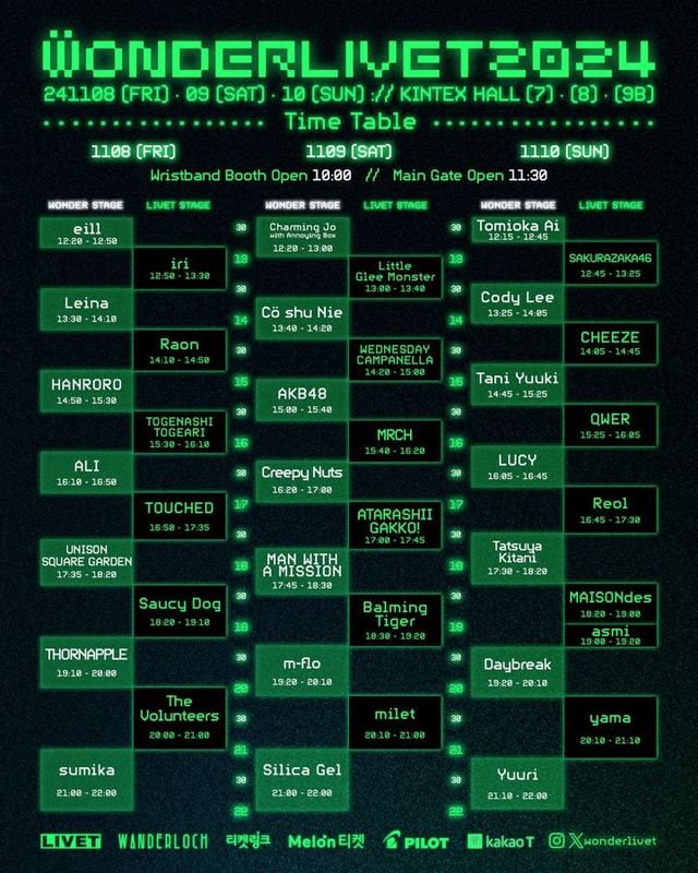 일본 밴드 라인업으로 꽉꽉 채웠고