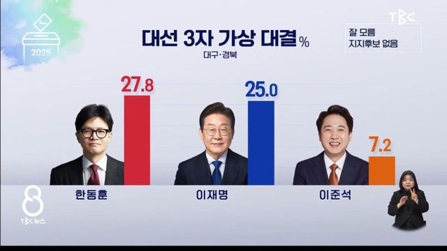 뻔히 예상되는 결과지만, 지역 막론하고 내란을 옹호하는 정당까지 지지할 일인가 싶습니다