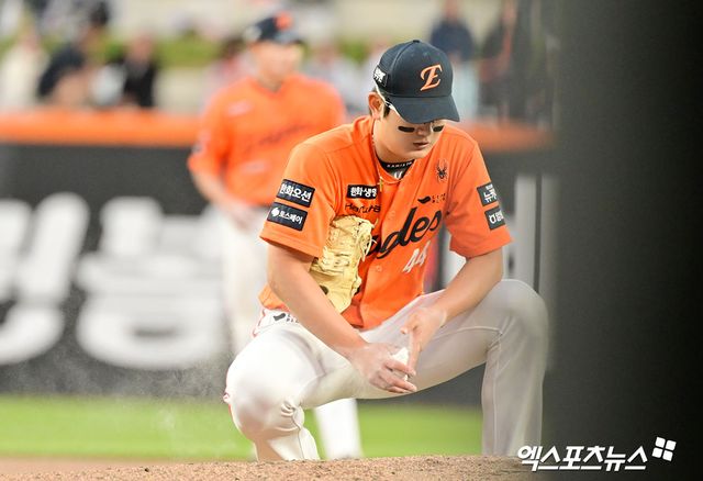 불과 하루 전, 씁쓸하게 경기를 끝낸 김서현이었다. 김서현은 1-1 동점이던 9회초 등판해 유준규 볼넷, 배정대 땅볼 후 권동진에게 다시 볼넷을 내주면서 1・2루 위기에 몰렸고, 결국 로하스에게 안타를 맞고 시즌 첫 실점과 첫 패전을 떠안았다. 이날 경기 전까지 13경기 연속 무실점으로, 올 시즌 단 한 번도 실점하지 않았던 김서현이었던 만큼 내상이 더 컸다.