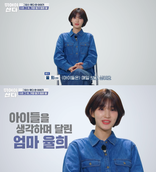 율희는 “아이들이 매일 보고싶다. 마라톤할 때도 생각이 난다”며 “최근 첫째의 입학식에 다녀왔는데 ‘엄마 42km 뛰어야 한다’고 말하니까, 첫째가 ‘내가 같이 가줄까? 나도 하고 싶어’라고 하더라. 그러고 오고 나니까 하루 종일 보고싶다”고 고백했다.