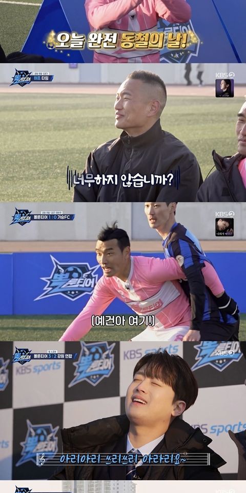 이런 팽팽한 분위기는 수비수 김동철이 '뽈룬티어' 첫 데뷔골을 터트리며 완벽하게 전환시켰다. 김동철의 극적인 득점에 흥분한 이찬원은 "앞쪽에 현영민, 정대세 스트라이커 두 명 있으면 뭐합니까! 수비수 김동철만도 못한데!"라고 소리쳤다. 그러자 정대세는 "너무하지 않습니까"라며 소심한 반항을 했다. 그리고 김예건의 정확한 패스에 이은 조원희의 그림 같은 180도 터닝 슈팅이 골문을 흔들며 승부에 쐐기를 박았다.
