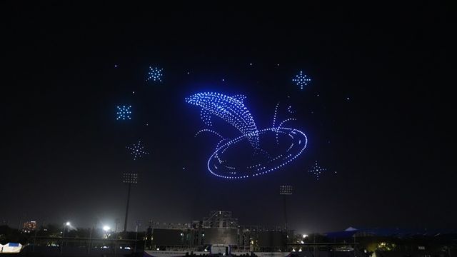 '남방큰돌고래의 여정'을 담은 도민체전 드론 라이트쇼. 제주도 제공