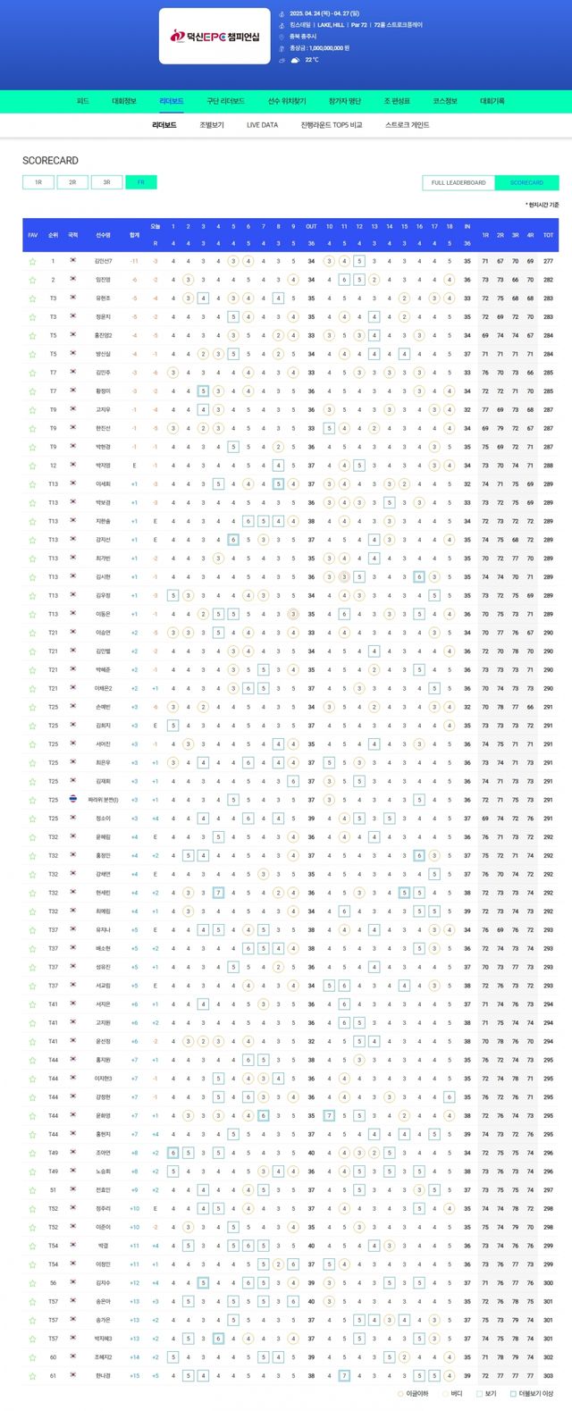 1.김민선7 -11(우승), 2.임진영 -6, T3.유현조-정윤지- -5, T5.홍진영2-방신실 -4, T7.김민주-황정미 -3, T9.고지우-한진선-박현경 -1, 12.박지영 E, T13.이세희-박보겸-지한솔-강지선-최가빈-김시현-김우정-이동은 +1, T21.이승연-김민별-박혜준 +2, T25.손예빈-서어진-최은우-김재희-짜라위분짠 +3, T32.윤혜림-홍정민-최예림 +4, T37.배소현-성유진 +5, T41.고지원-윤선정 +6, T44.홍지원-홍현지 +7, T49.조아연-노승희 +8, T54.이정민 +11, T57.송은아-송가은 +13.