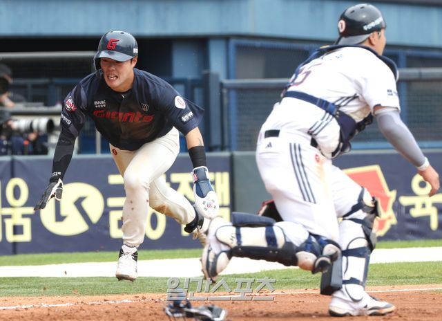 전준우의 홈런이 나온 뒤엔 집중력을 되찾았다. 롯데는 고승민이 볼넷으로 출루했고, 전민재가 왼쪽 외야 선상에 떨어지는 2루타를 때려내 그를 불러들였다. 전민재의 재치가 계속해서 빛났다. 두산 수비진이 홈으로 파고드는 고승민을 잡아내려고 하는 동안 그는 3루까지 진루했다. 한 베이스가 한 점이 됐다. 그는 후속 황성빈의 땅볼 때 홈에 파고들면서 6-3으로 좁히는 수훈갑이 됐다.