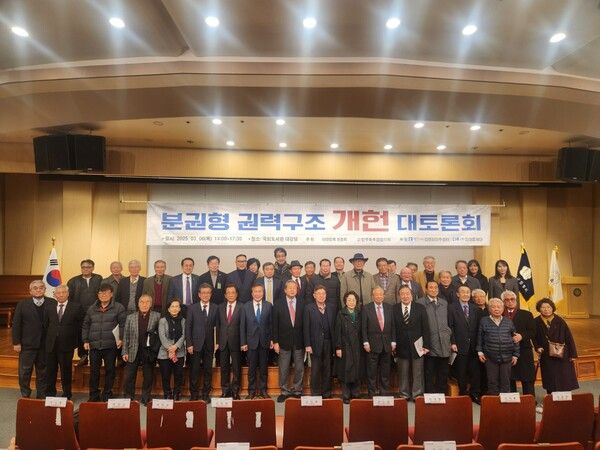 분권형 대통령제의 핵심 내용에 대해 정 회장은 “첫째, 총리한테 권한을 이양하고 국회에서 총리를 선출해 국회에서 책임지는 책임총리제와 둘째, 단원제보다는 양원제 즉 상하원제를 만들어서 미국처럼 대통령의 고위 공무원 임명권동의를 상원에 줘서 상원이 대통령의 권한을 견제, 감시, 비판할 수 있게끔 만들어 단원제의 하원에서 입법 독주라든가 폭주할 수 있는 가능성도 상원에서 서로 완화시킬 수 있다”고 말했다.