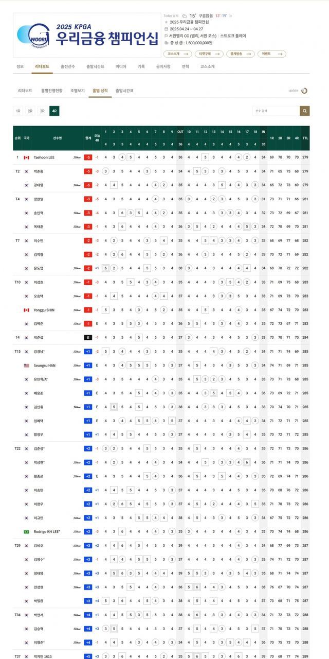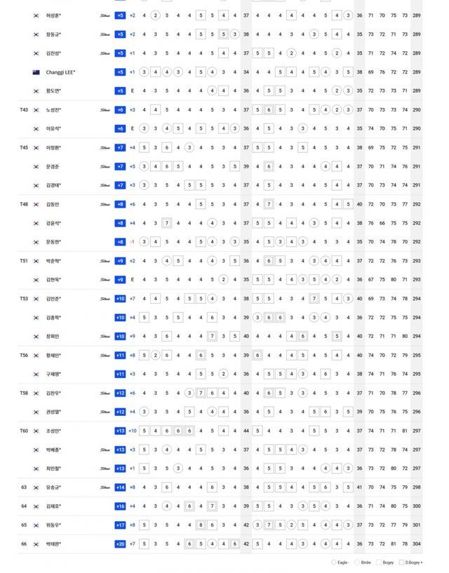 1.이태훈 -5(연장우승), T2.박준홍-강태영 -5, T4.정한밀-송민혁-옥태훈 -3,T7.이수민-김학형-문도엽 -2, T10.이성호-오승택-신용구-김백준 -1, 14.박준섭 E, T15.강경남-한승수-유민혁A-배용준-김민휘-임예택-함정우 +1, T22.박상현-황중곤-이승민-이창우 +2, T29.김비오-김영수-정태양-전성현 +3, T34.김승혁-이형준 +4, T37.박지민1613-황도연 +5, T45.이정환-문경준-김경태 +7, T48.김동민-문동현+8, T51.김현욱 +9, T53.장희민 +10, T58.김찬우 +12, T60.최민철 +13, 63.유송규 +14.