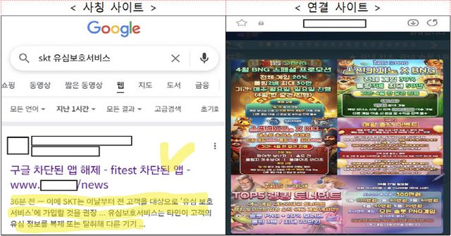 이용자가 검색 엔진에 유심 무상 교체·유심보호 서비스 등 관련 키워드를 입력하면 언론보도 일부를 발췌·삽입한 검색 결과가 노출된다. 해당 결과 클릭 시 중간 경유용 비영리 도메인을 경유해 최종적으로 도박 사이트로 연결되는 공격 방식이다.