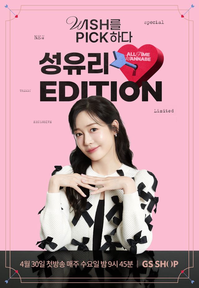 GS샵이 오는 4월 30일(수) 밤 9시 45분에 성유리가 진행하는 셀럽 라이프 스타일 프로그램 ‘성유리 에디션(Edition)’ 첫 방송을 선보인다.