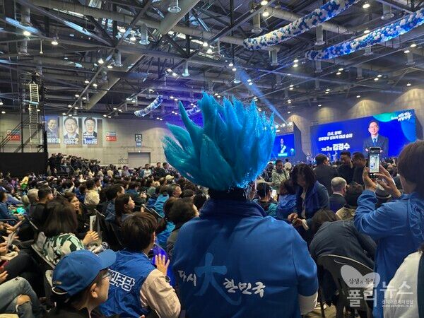 [폴리뉴스 안다인 기자] 더불어민주당 21대 대통령 선거 후보자를 선출하기 위한 지역 순회 경선 마지막 날 수도권·강원·제주 지역에서 온 당원들이 응원봉을 손에 들고 각자 지지하는 후보인 ‘이재명’, ‘김동연’, ‘김경수’를 외치며 경선 현장은 마치 콘서트장 같은 분위기를 방불케 했다.