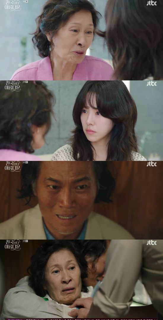 27일 방송된 JTBC 토일드라마 '천국보다 아름다운' 4회에서는 고낙준(손석구 분)이 지옥 이탈자에게 인질로 붙잡힌 이해숙(김혜자)을 구한 모습이 그려졌다.