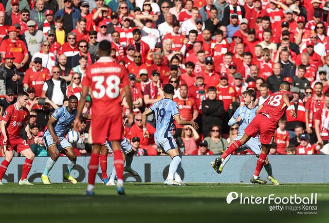 기세를 탄 리버풀이 순식간에 역전에 성공했다. 전반 24분 흐라벤베르흐의 패스를 받은 맥 알리스터가 환상적인 왼발 중거리 슈팅을 시도해 골망을 갈랐다. 공은 비카리오 골키퍼가 막기 어려운 골대 구석으로 정확히 꽂혔다. 리버풀의 공격은 멈추지 않았다. 전반 34분 각포의 추가골까지 나오며 스코어 3-1로 달아났다.