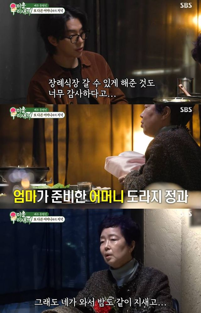 . 어머니는 "아빠 돌아가시기 전에 아빠를 만나게끔 해주시지 않았냐. 고모 통해서 봐도 되냐고 해서"라며 "아빠 돌아가기 전에 만난 거 아니냐. 그것도 엄마가 항상 감사하다고 생각하고 있다는 얘기도 하고 장례식 때도 그 어머니 입장에서는 엄마가 불편할 수도 있는데 덕분에 아빠 떠나는 것도 봤고"라고 말했다.