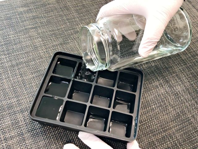 구연산수를 얼음틀에 붓고 냉동실에 넣어서 얼려주세요.