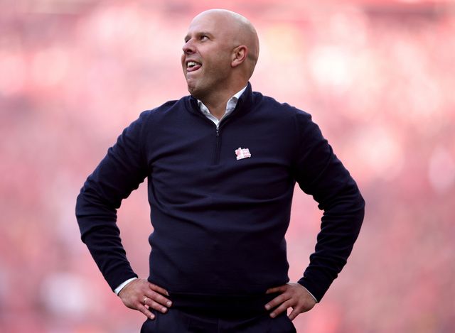 epa12059227 Liverpool manager Arne Slot looks on after the English Premier League soccer match between Liverpool FC and Tottenham Hotspur, in Liverpool, Britain, 27 April 2025. Liverpool won 5-1 to win their 20th English league title. EPA/ADAM VAUGHAN EDITORIAL USE ONLY. No use with unauthorized audio, video, data, fixture lists, club/league logos, 'live' services or NFTs. Online in-match use limited to 120 images, no video emulation. No use in betting, games or single club/league/player publications./2025-04-28 04:57:45/