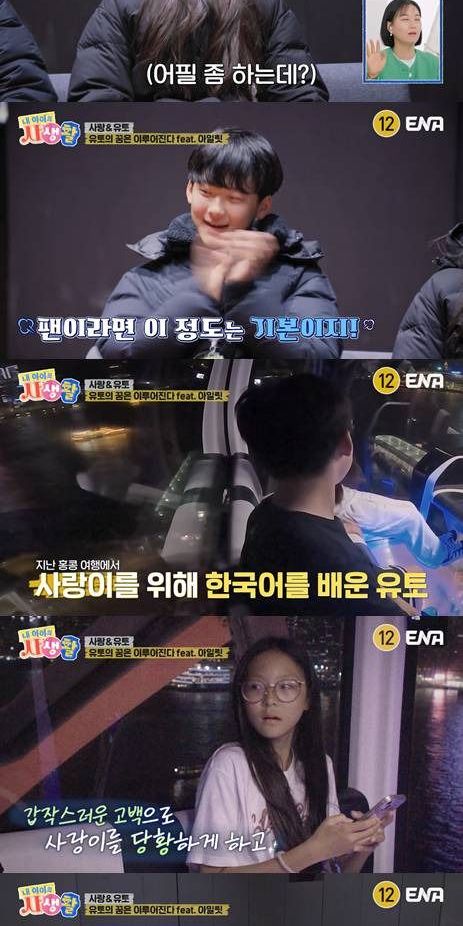 (엑스포츠뉴스 김현정 기자) ‘내 아이의 사생활’ 유토의 최애 아이돌 ‘아일릿’과의 깜짝 만남을 준비한 사랑이와 사랑이의 일일 매니저를 자처한 유토. ‘러브유’ 커플의 서울 여행이 시청자들에게도 설렘을 안겼다.