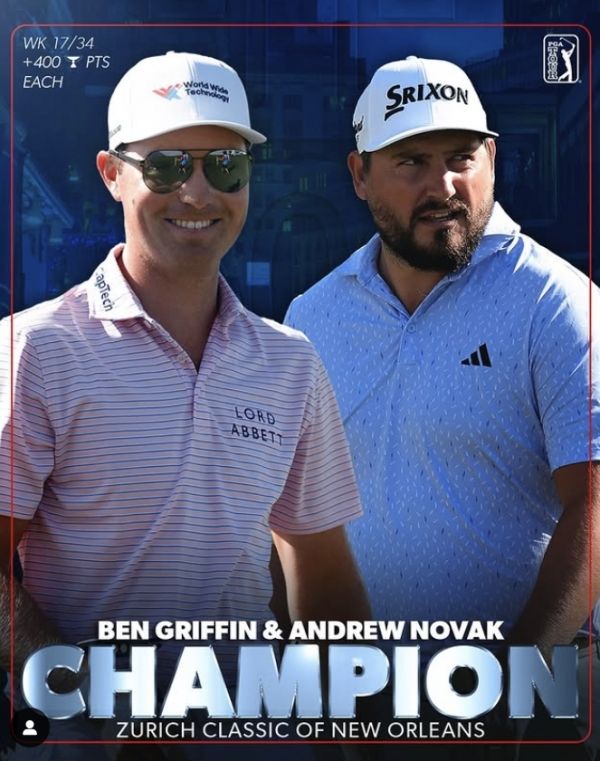 노박과 그리핀은 이날 버디 4개, 보기 3개로 1타를 줄여 합계 28언더파 260타를 쳐 니콜라이 호이고르-라스무스 호이고르(덴마크) 형제를 1타 차로 제치고 정상에 올랐다.