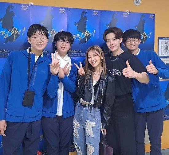공개된 사진 속에는 '삼둥이'로 불리는 송일국의 아들 대한·민국·만세 군이 뮤지컬 '드림하이'에 출연한 선예, 세븐과 기념 사진을 찍은 모습이 담겨 있다.