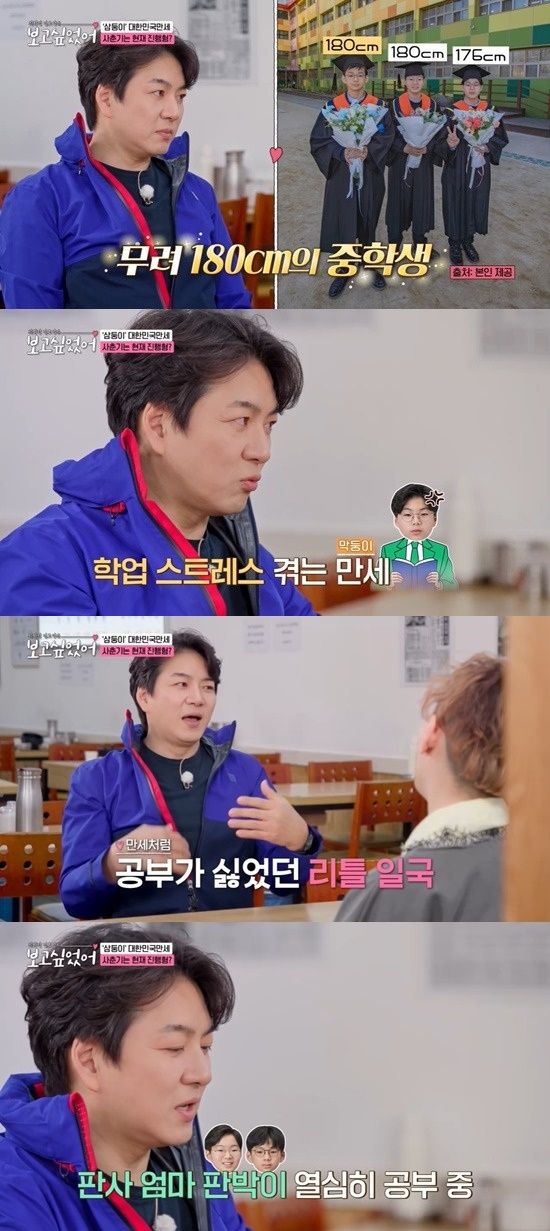 또 '만세가 공부를 잘 하냐'는 물음에는 "만세는 제 아들이다. 너무 제가 그 마음을 잘 아니까 '저 때 잘못 건드리면 나처럼 되겠구나' 싶어서 안 건드린다. 대한이랑 민국이는 엄마 아들이다. 쫒아가고 있다"고 했다.