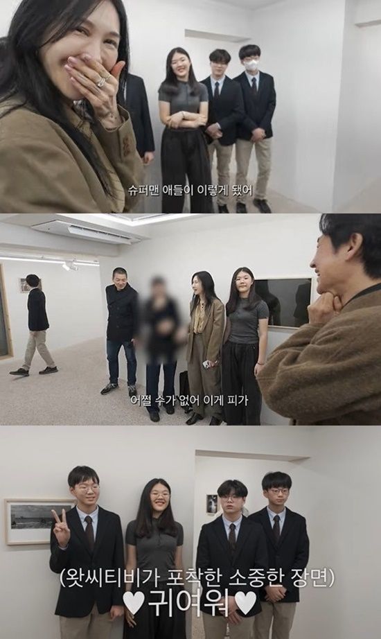 송일국과 아내는 삼둥이와 함께 사진작가로 첫 전시를 여는 배우 엄태웅의 전시회 현장을 찾았고, 중학교 1학년이 된 삼둥이는 교복을 입고 엄마·아빠와 전시회장을 찾아 시선을 모았다.