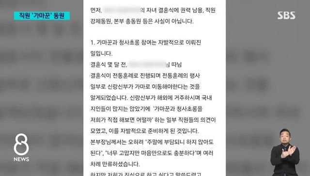 본부장 자녀 결혼식 때 직원들 자발적으로 참여