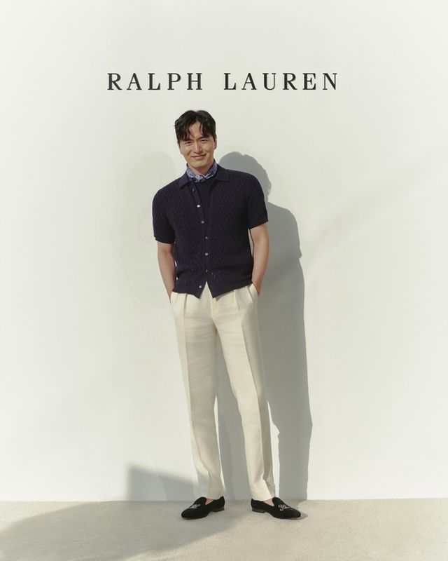 이날 이진욱은 랄프 로렌 퍼플 라벨의 텍스처드 코튼 쇼트 슬리브 가디건과 네커치프를 활용해 부산과 어울리는 리조트 룩을 완성했다.