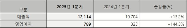 전년 동기 대비 매출은 13.2%, 영업이익은 144.3% 증가했다. 1분기 기준 역대 최고 실적을 달성했으며, 특히 매출은 2018년부터 8년 연속 꾸준한 성장세를 이어가고 있다.