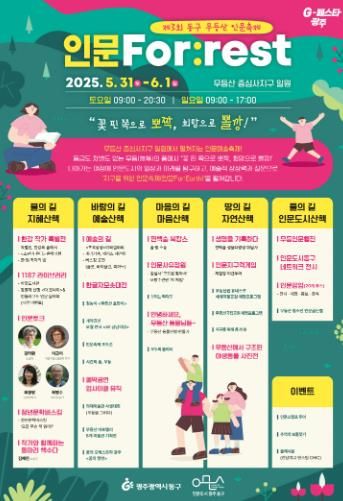 [파이낸셜경제=김영란 기자] 광주 동구가 오는 5월 31일과 6월 1일 이틀간 무등산 증심사 지구 일원에서 ‘제3회 동구 무등산 인문축제’ '인문For:rest'를 개최한다고 밝혔다.