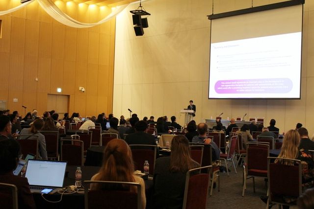 서대근 경희대학교병원 정형외과 교수가 2025 세계골관절염학회에서 강스템바이오텍의 골관절염 치료제 '오스카' 임상 1상 결과 데이터를 발표하고 있다. ⓒ 강스템바이오텍