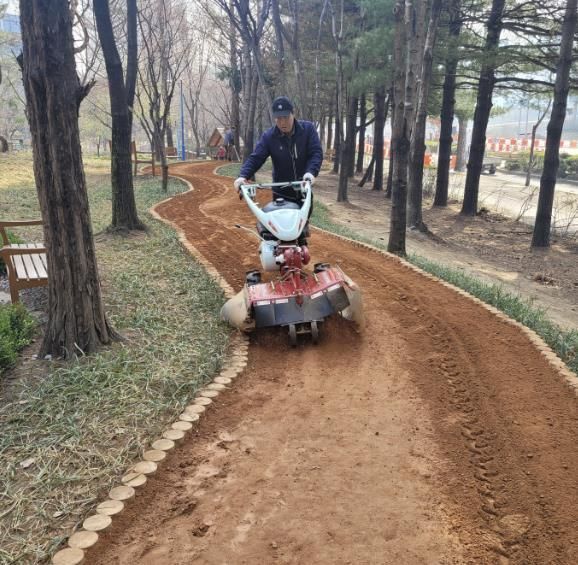 한편 수시 관리가 필요한 황토를 소재로 만든 숲속황톳길은 밀착으로 관리하는 도시녹지관리원을 상시 배치하여 밟을수록 단단하게 굳어지는 황톳길을 매일 1회 이상 전문 관리기로 갈아엎어 부드럽게 고르는 작업을 실시하며 관리함으로써 안전하고 쾌적한 맨발길 상태로 유지하고 있어 시민들의 큰 호응을 얻고 있다.