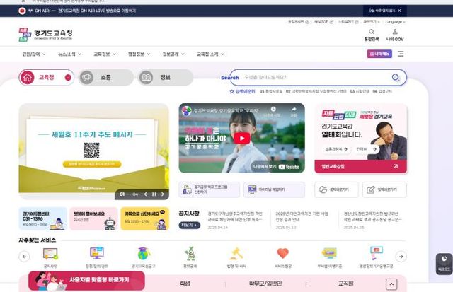 | ▲ 경기도교육청 공식 누리집 첫 화면 |