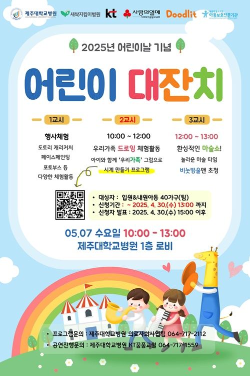 [한라일보] 제주대학교병원이 어린이날을 포함, 5월 가정의달을 맞아 다채로운 행사를 마련한다.
