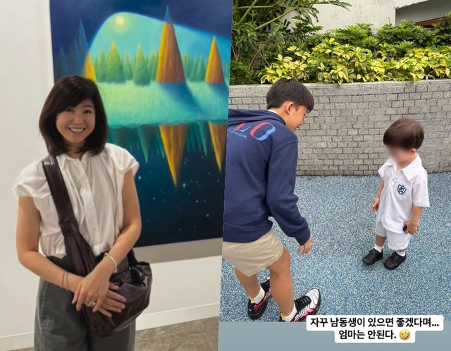 28일 강수정은 자신의 인스타그램 스토리에 한 장의 사진을 사진을 게재하며 "자꾸 남동생이 있으면 좋겠다며...엄마는 안 된다"라는 글을 남겨 웃음을 자아냈다.