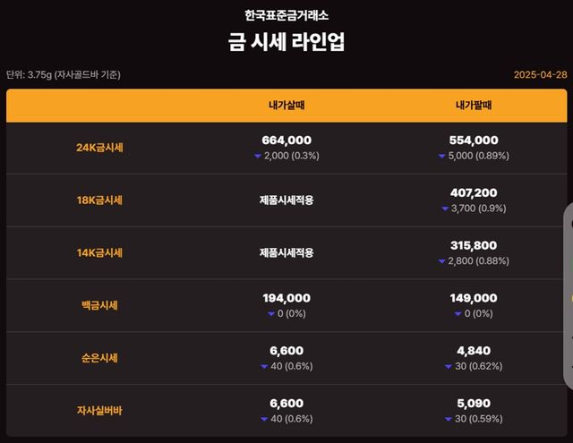 순금(24K) : 매입가 66만 5000원 / 매도가 55만 3000원