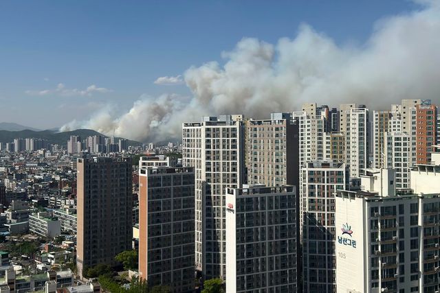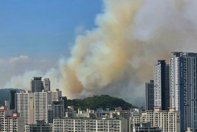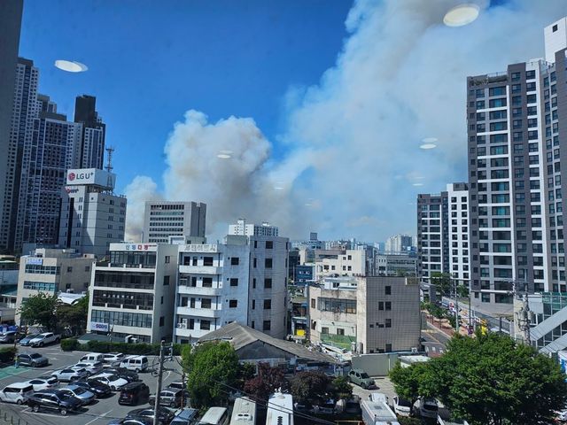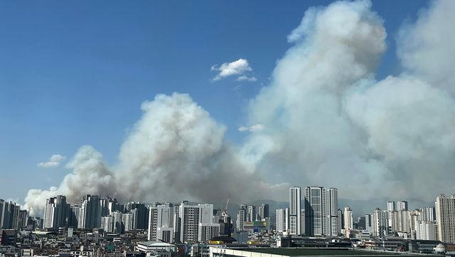 아래는 대구 북구 노곡동 함지산 산불 현장 인근 사진이다.