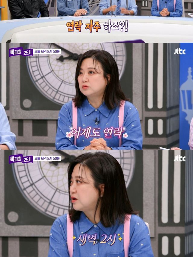 이에 김숙은 "그렇다. 어제도 연락했다"고 밝혔고, "몇시인지가 중요하다. 언제 했나"라는 질문에 "새벽 2시다"라고 답해 의미심장한 분위기를 형성했다.