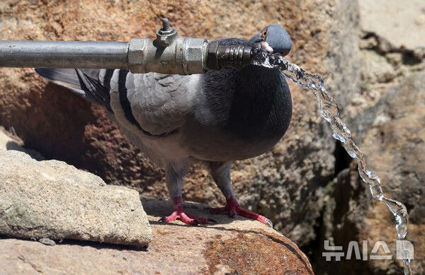 [서울=뉴시스] 대구 낮 최고기온이 24도까지 오르며 초여름 날씨를 보인 28일 대구 중구 달성공원에서 비둘기가 물을 마시고 있다.