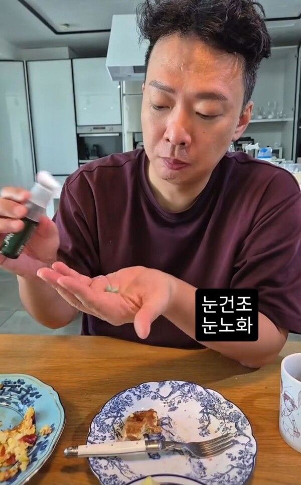 이어 "눈 건강을 위해 할 수 있는 걸 많이 찾는다. 건강 챙기기, 눈건강 눈노화"라며 걱정을 드러냈다.